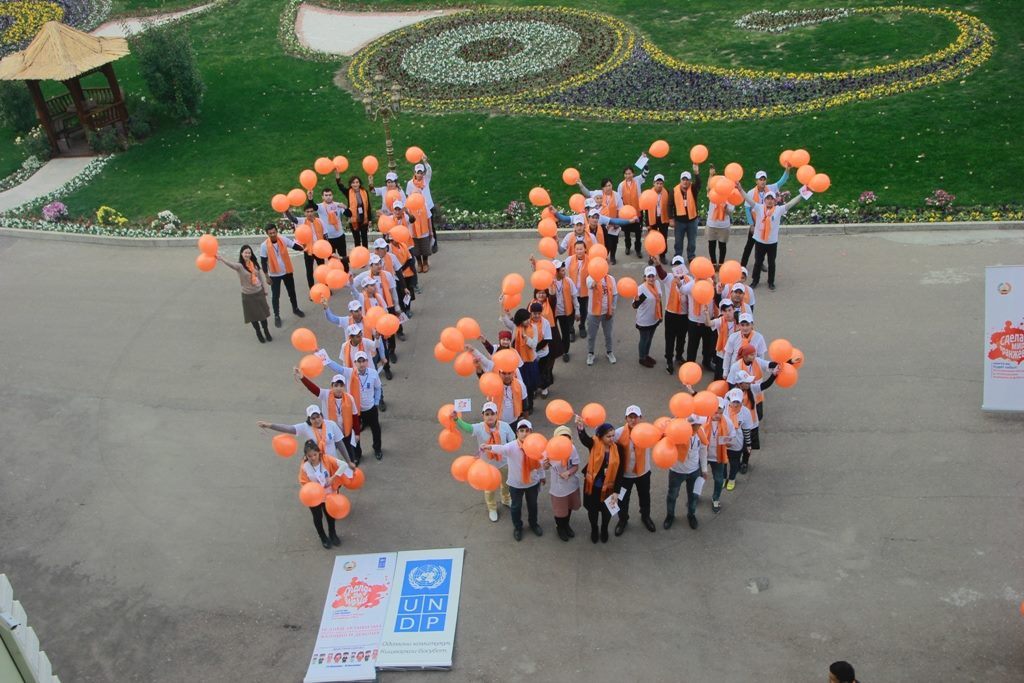 Чтобы выразить свой голос против насилия и сказать, что они не приемлют насилие против женщин, участники молодежной конференции организовали флешмоб «Сделаем мир оранжевым».